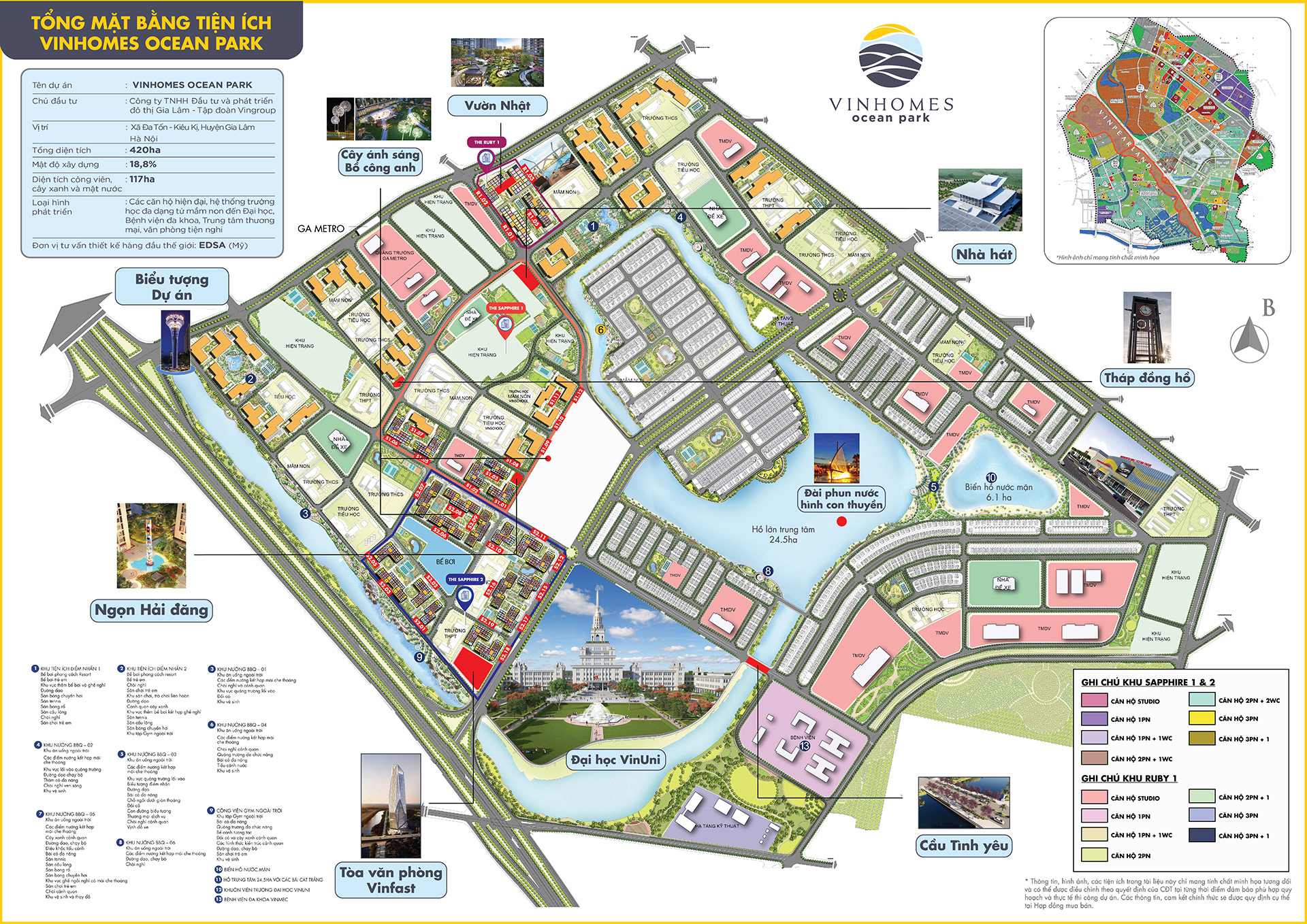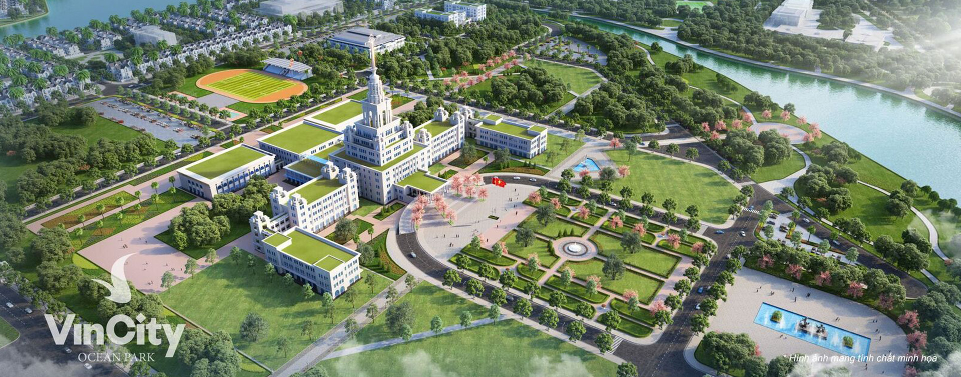- Khoảng: 62 ha công viên và cây xanh | Mật độ tb xây dựng: 19.2 %