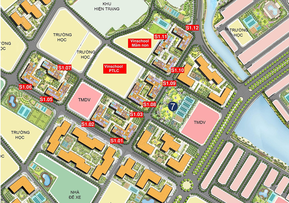 - Khu thấp tầng: Gồm 4 phân khu: Ngọc Trai, Sao Biển, San Hô, Hải Âu.